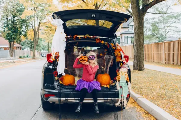 En lang brun parykk, pluss noen rotete falske tenner. Glidelås en hettegenser over jumpsuiten din.